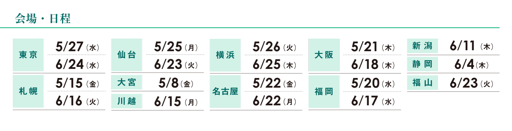 開催日時 開催地 会場   メイン講師 状況